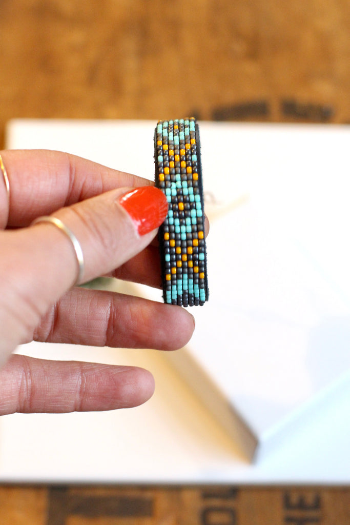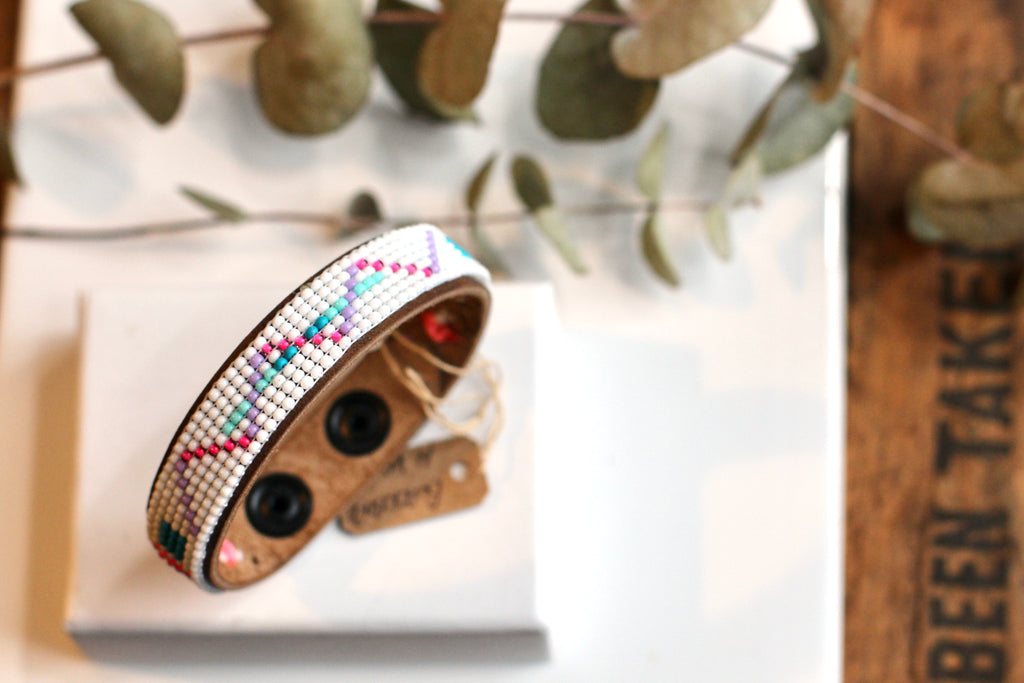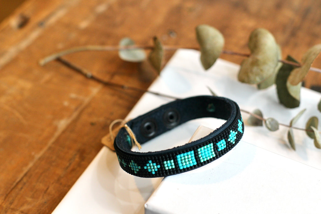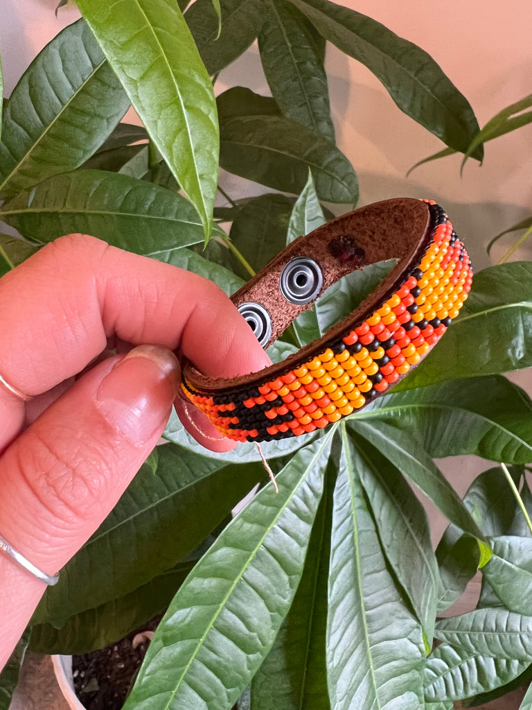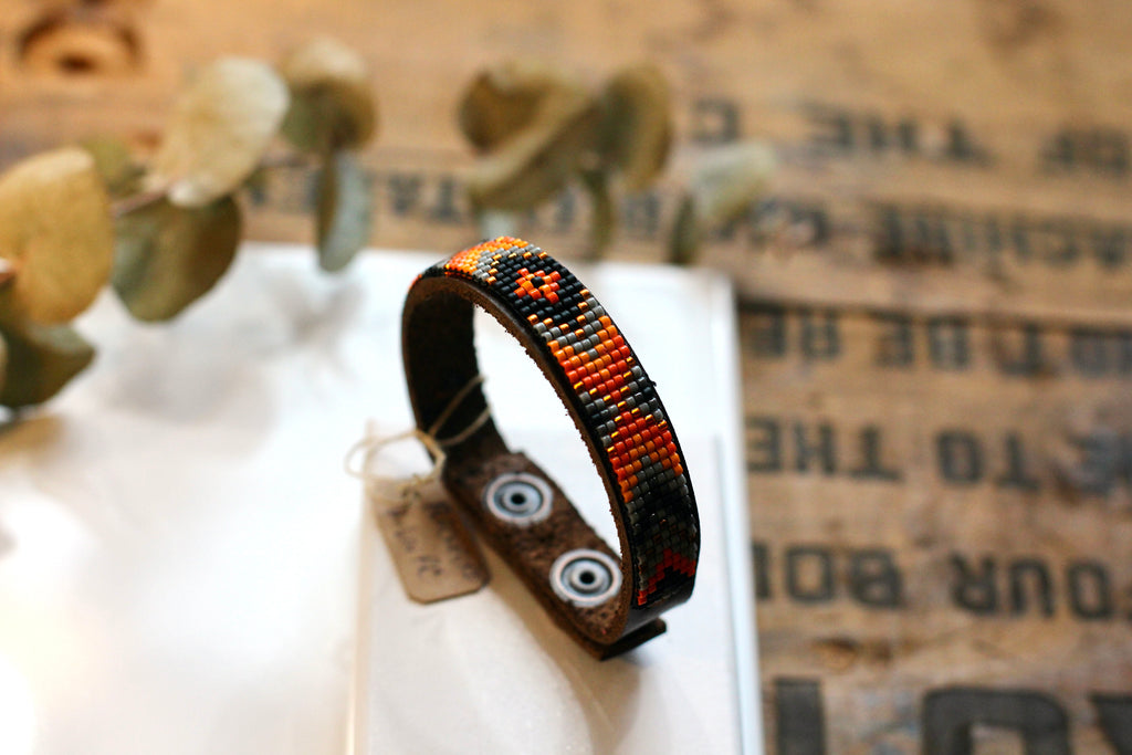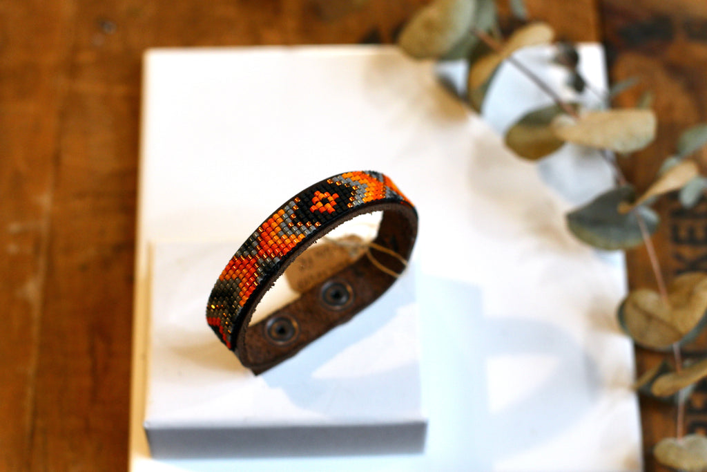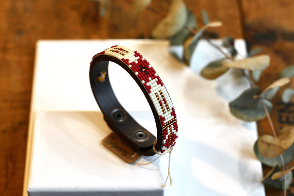 These beautiful handmade beaded bracelets are on durable leather and made to wear and love! Each one is carefully made paying close attention to detail and quality. Anishinaabe artist Blackbird Larabee creates each one start to finish in North Vancouver, BC.